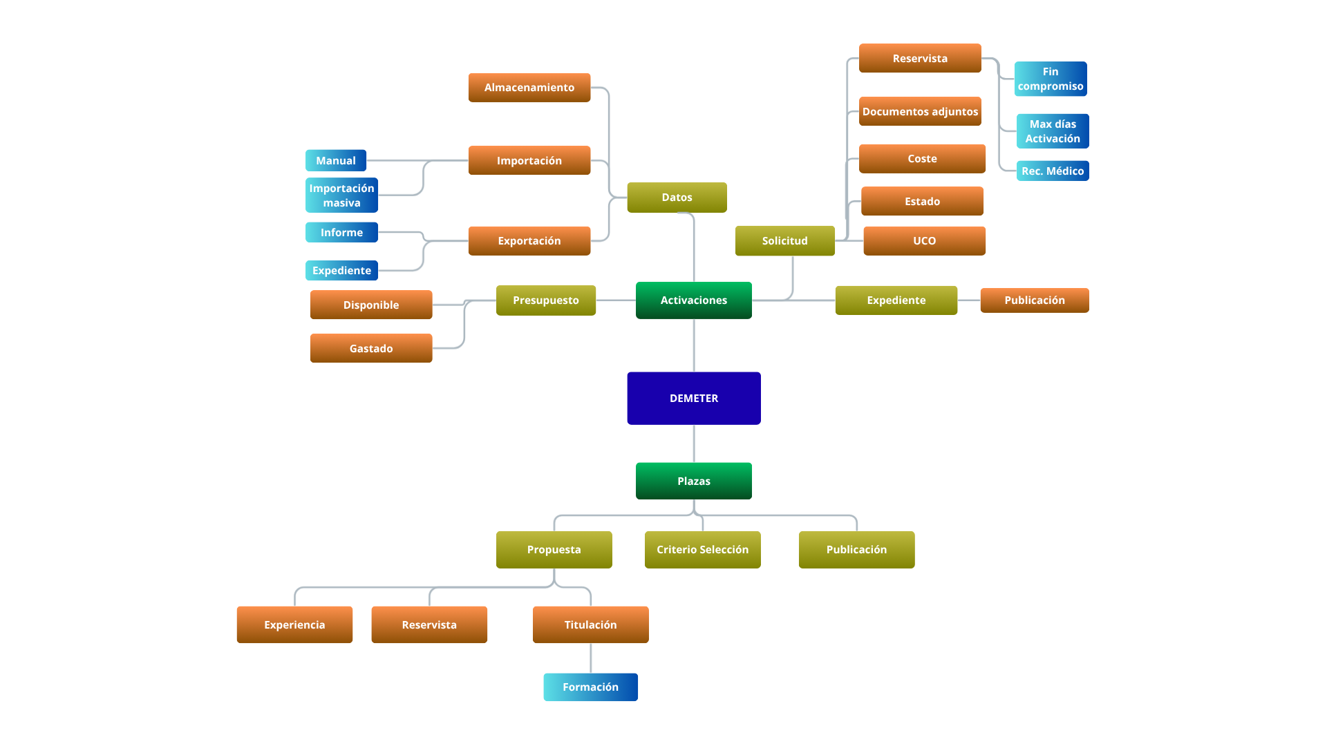 Con el fin de establecer un marco común del entorno, necesitamos definir de forma unívoca una serie de términos, reduciendo así la distancia entre la posible visión del cliente y la del analista de negocio. Para ello, se establece el siguiente mapa conceptual y se definen una serie de conceptos principales.